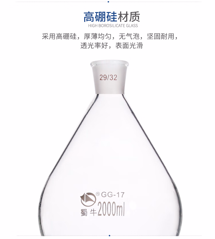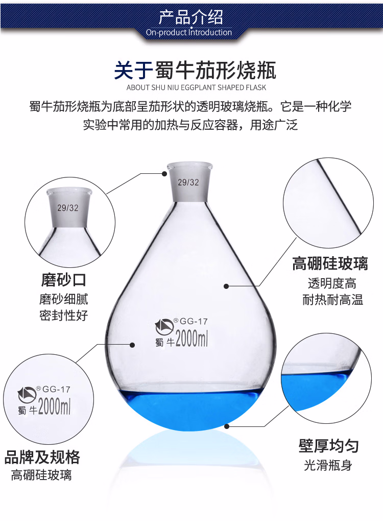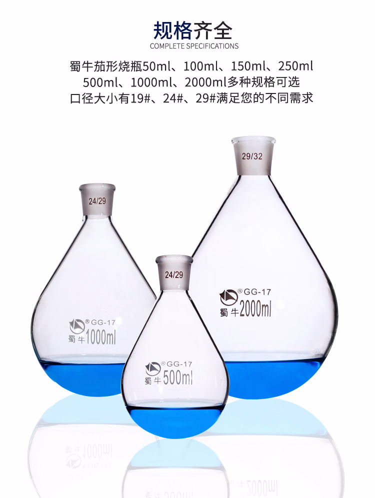 茄形烧瓶,旋转蒸发仪器烧瓶,高硼硅玻璃蒸馏烧瓶