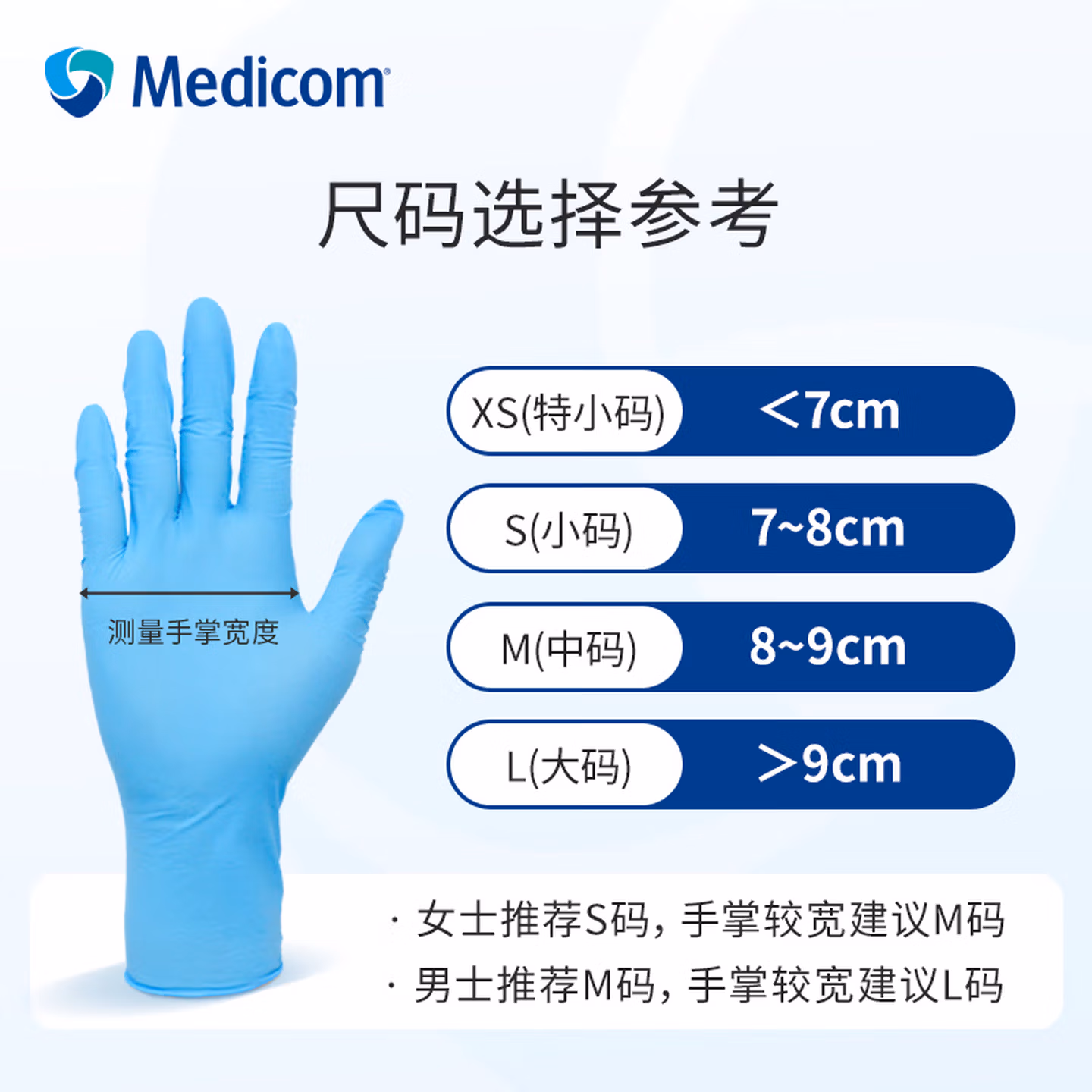 麦迪康/Medicom 1182 加长型医用丁腈检查手套,蓝色,无粉,指麻,100只/盒