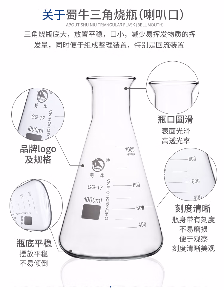 三角烧瓶,喇叭口,带刻度