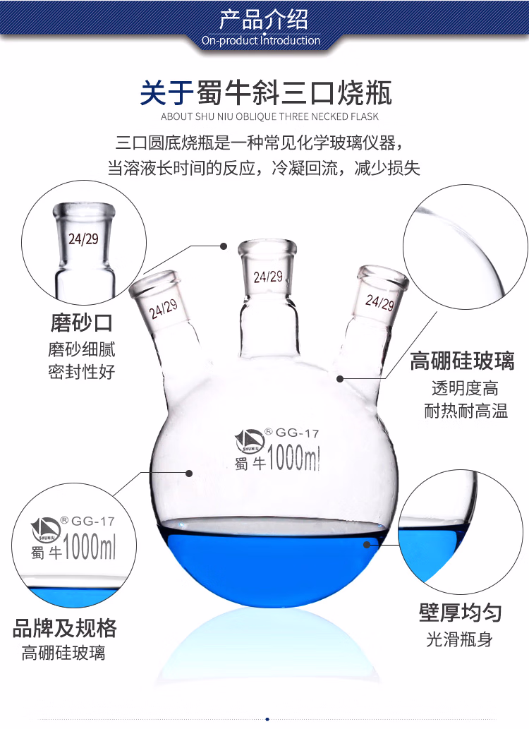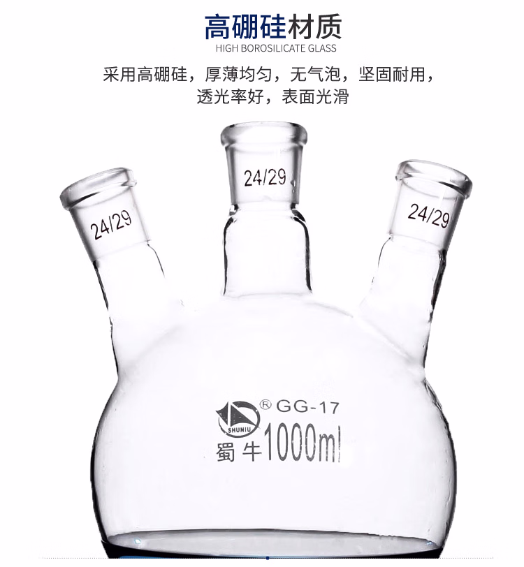 斜口三口烧瓶,高硼硅,标口