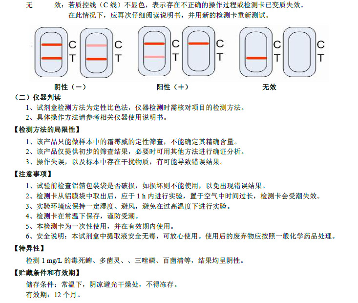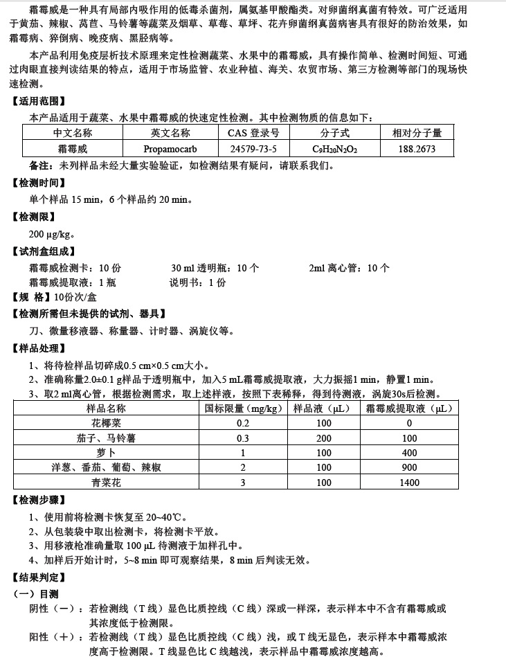 用途:适用于果蔬中霜霉威的快速定性检测。