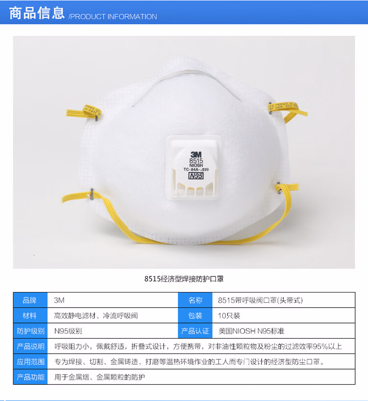 3M 8515CN KN95 电焊防护口罩