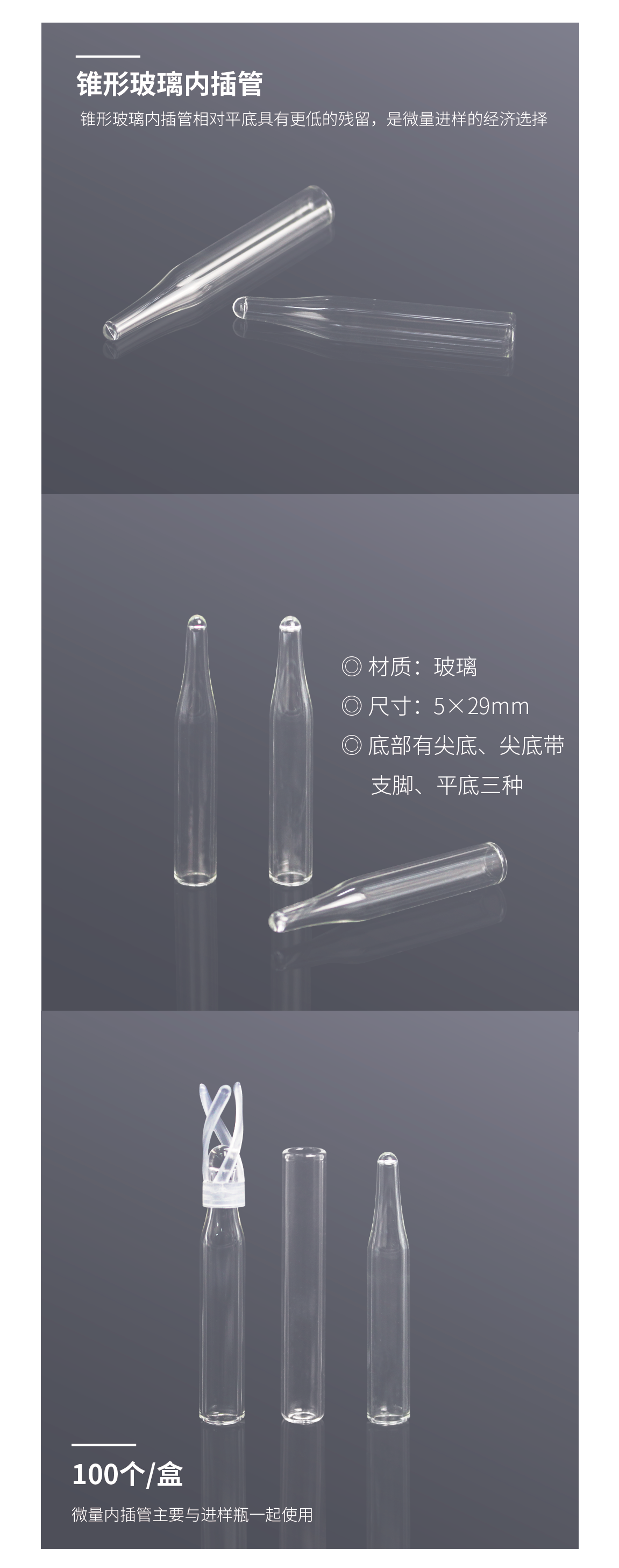5×29mm进样瓶微量内插管 尖底带支脚