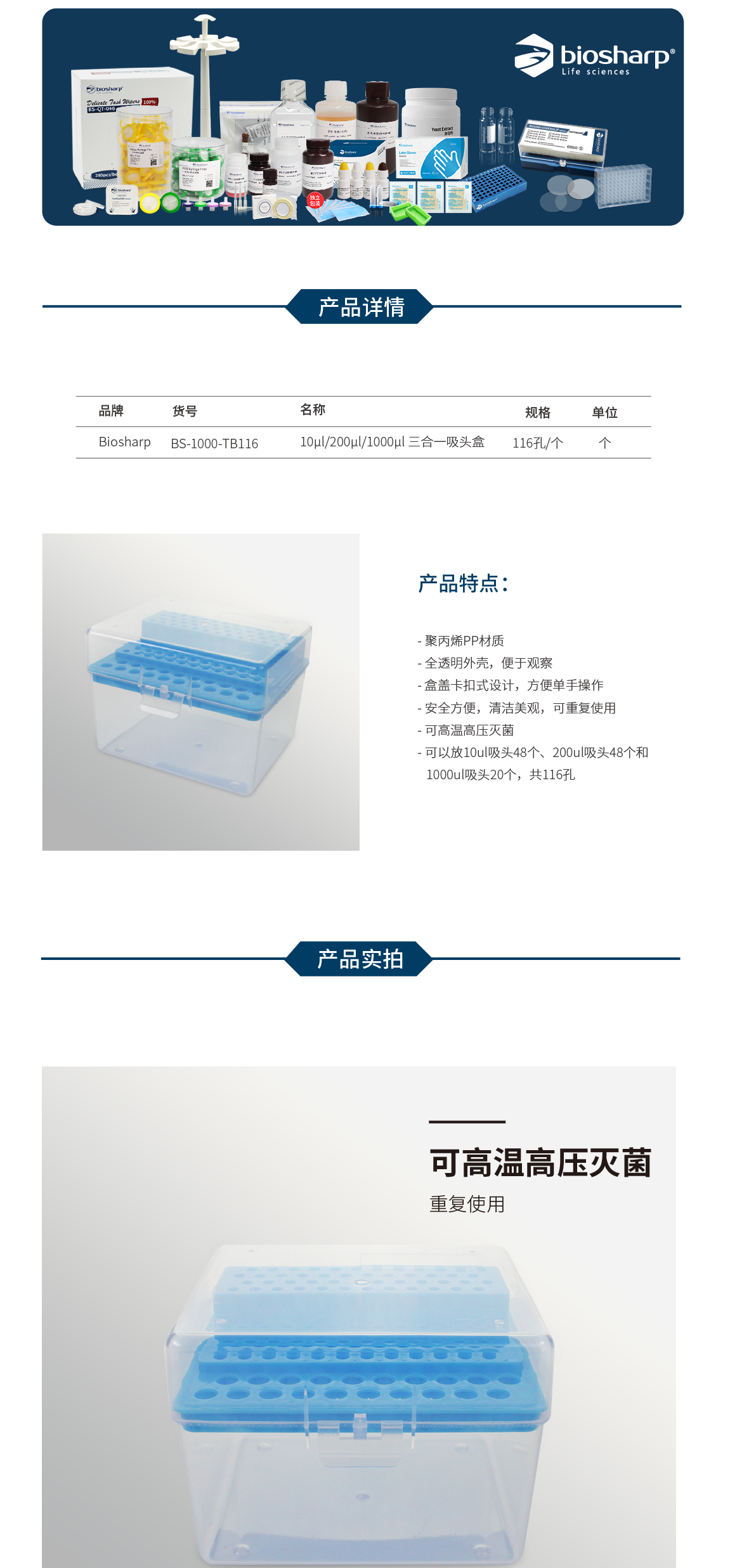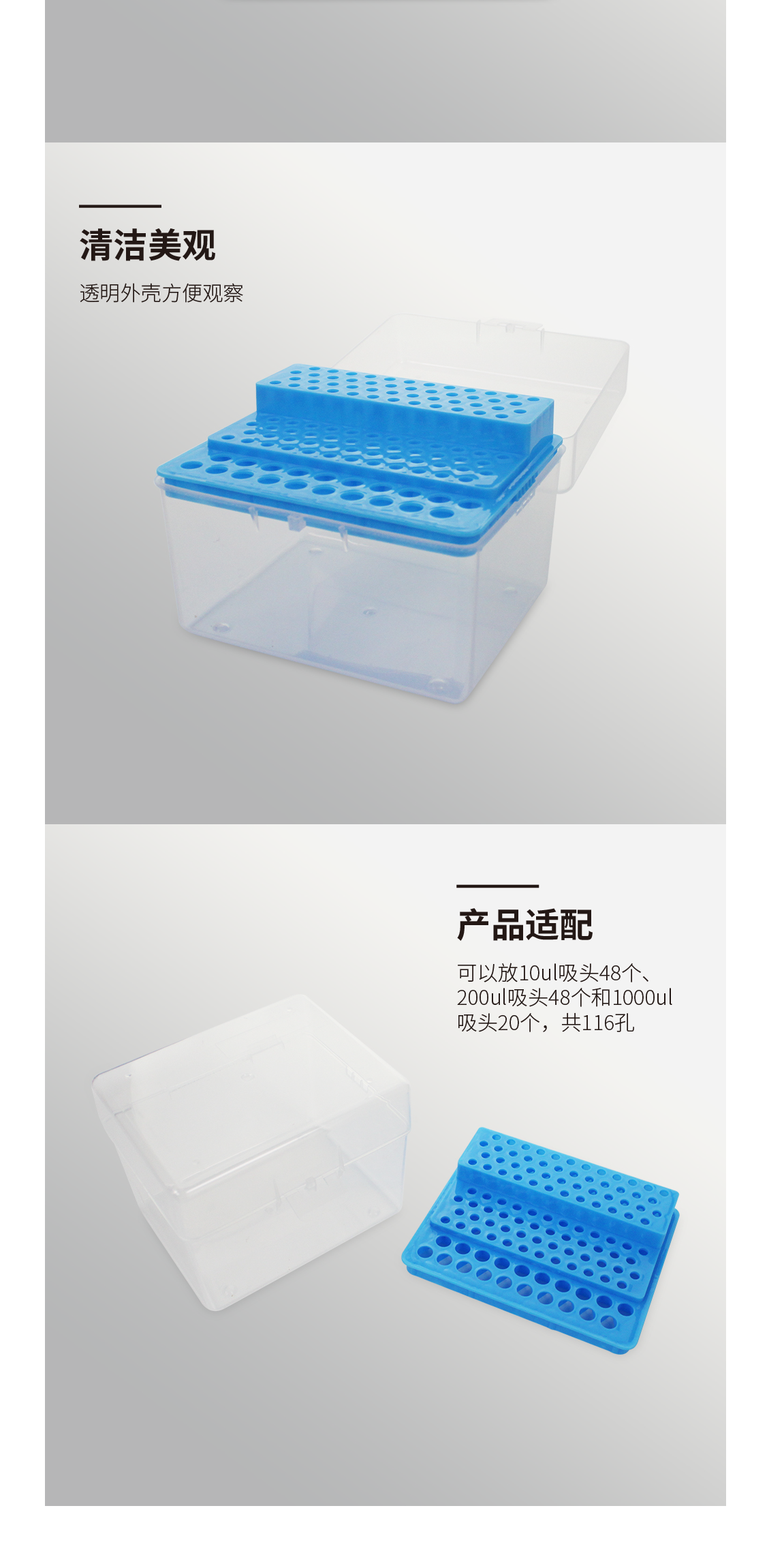 TipBox吸头盒,空盒,含蓝色吸头盒托架,适用于1000μl的吸头